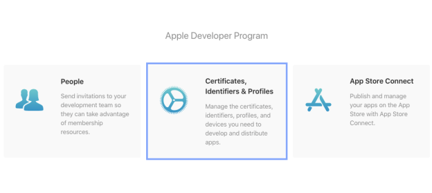 - Sign in to the Apple Developer Member Center → Certificates, Identifiers & Profiles.