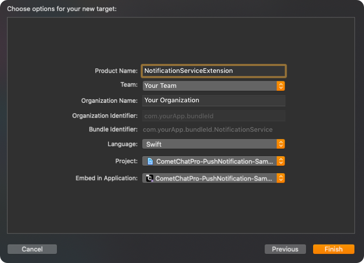 Step 1: Add UNNotificationServiceExtension inside the app.
