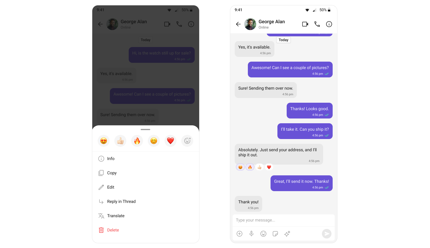 CometChat’s Reactions feature adds a layer of expressiveness to your chat application by allowing users to react to messages. With Reactions, users can convey a range of emotions or express their thoughts on a particular message without typing out a full response, enhancing their user experience and fostering greater engagement.