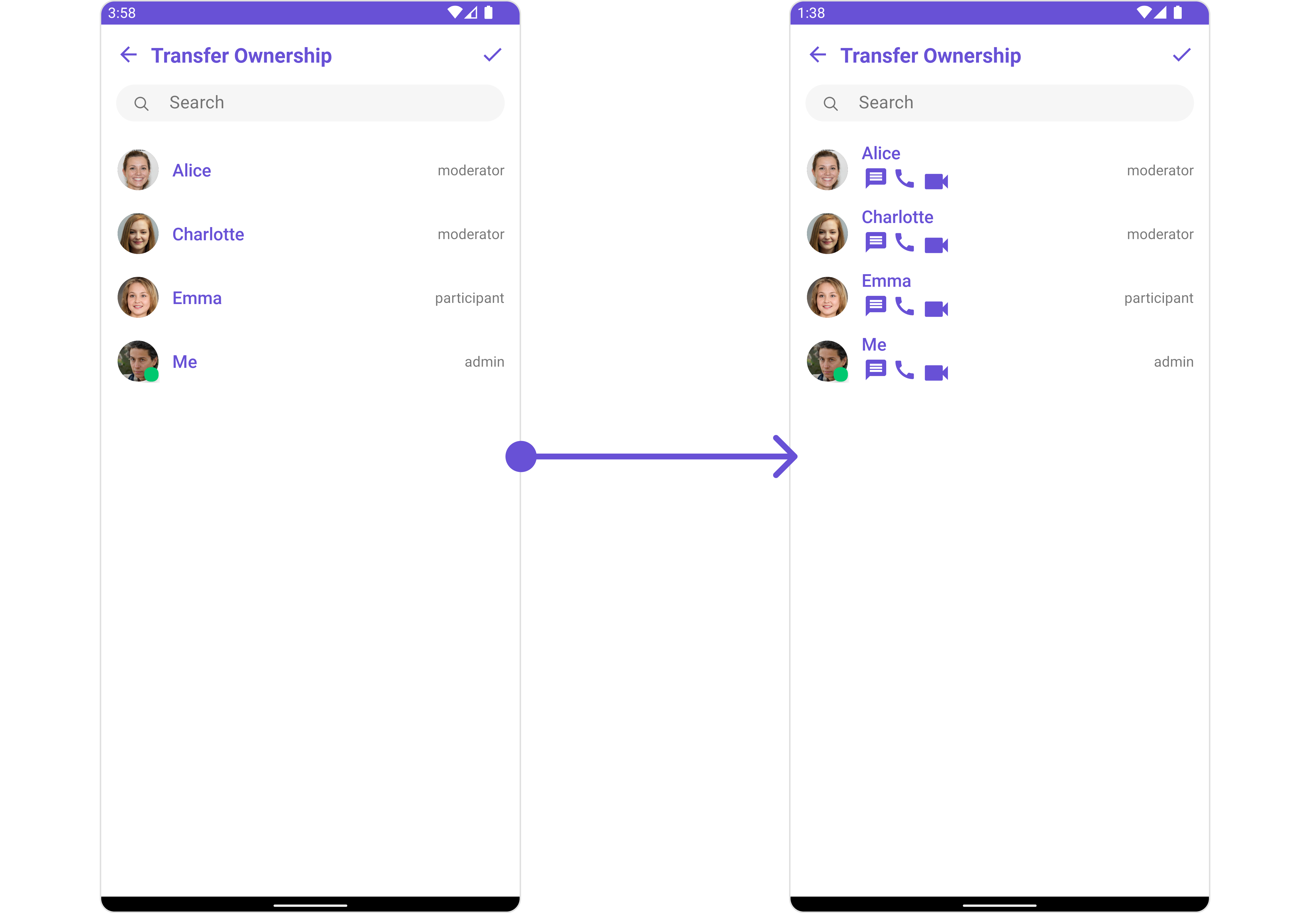 | CometchatGroupMembers | CometChatGroupMembers is an independent component designed to create a user-friendly screen for browsing and managing group members. Users can effortlessly search for specific members and transfer ownership |