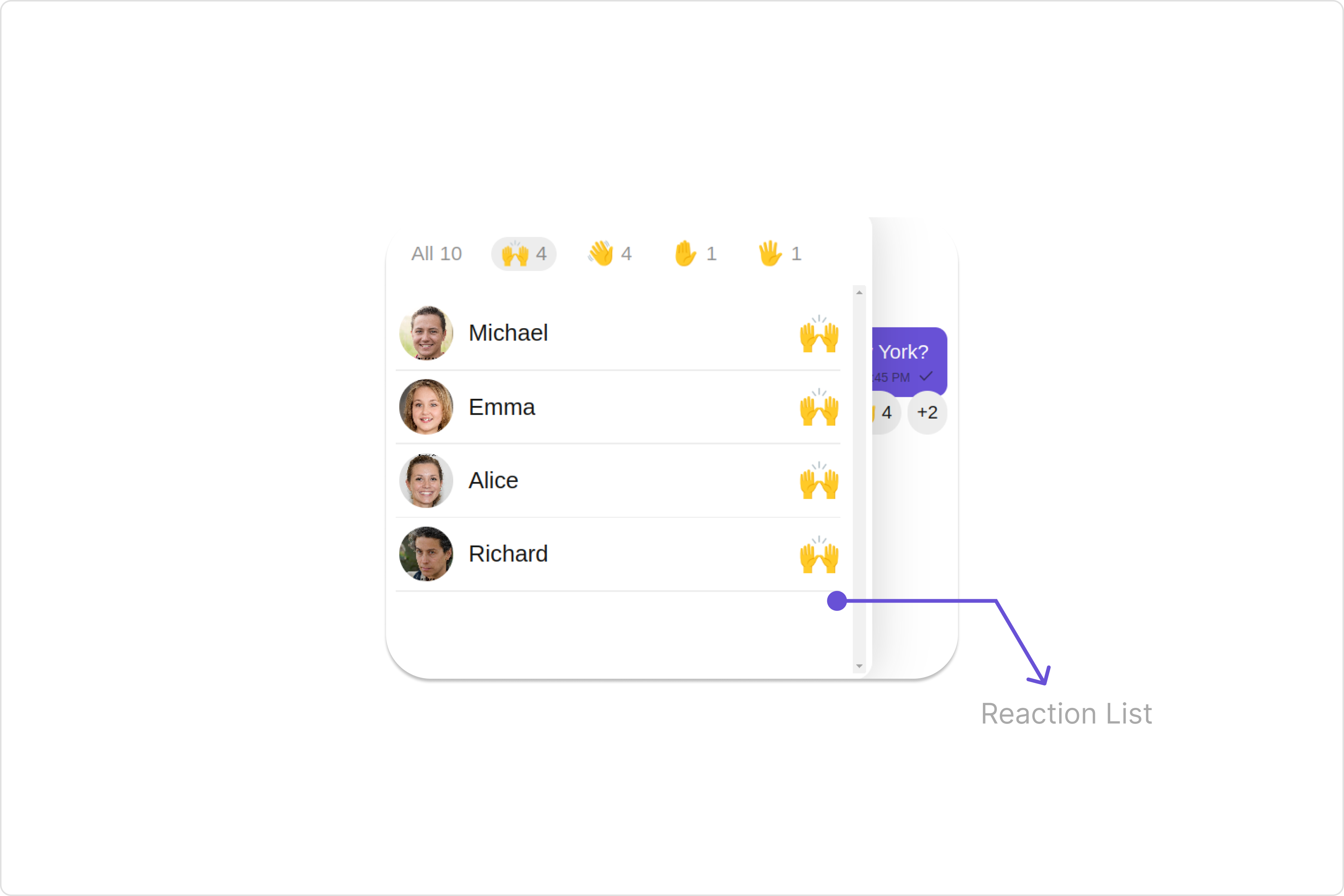 In the above example, we are styling a few properties of the Reaction List component using reactionListConfiguration.