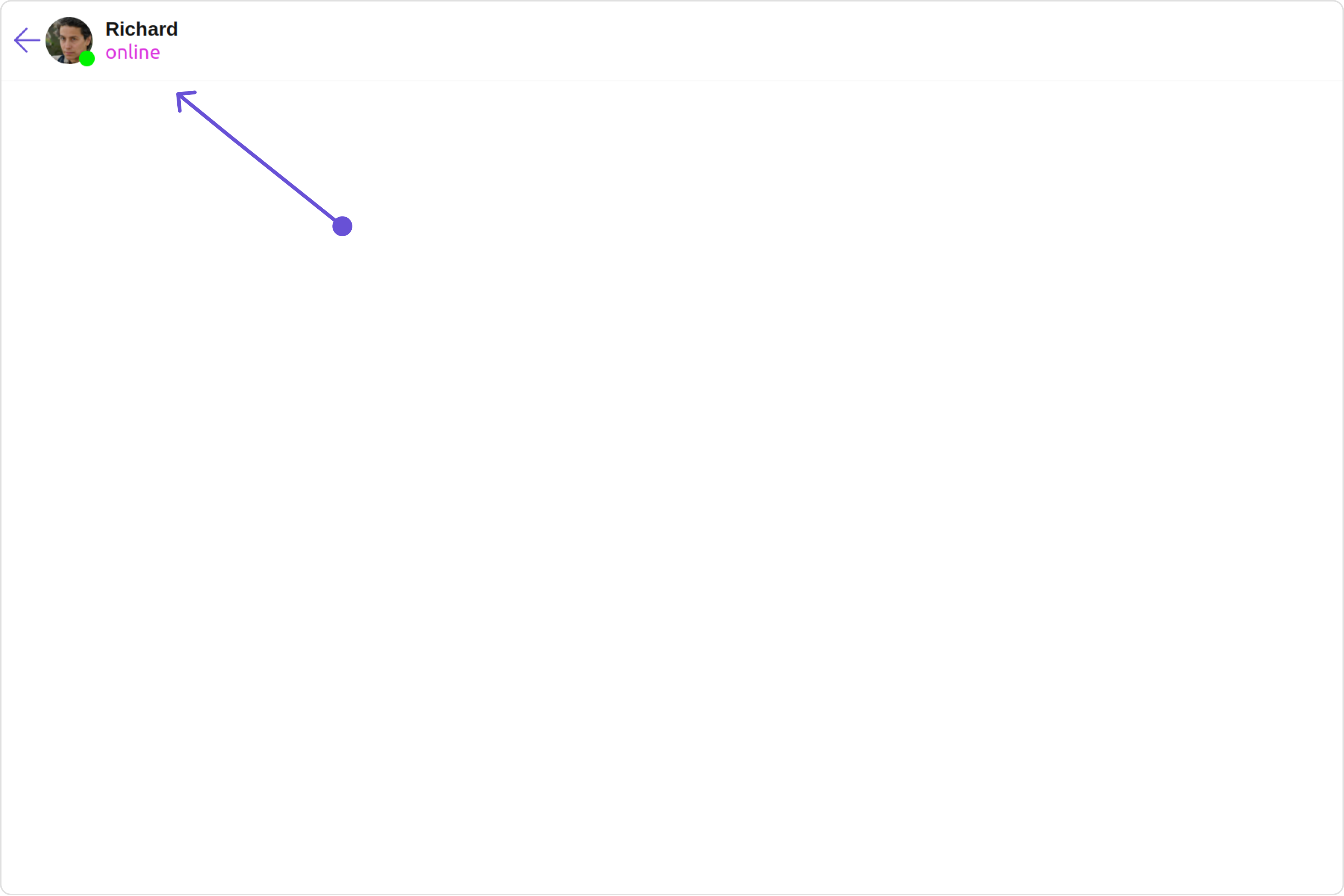 MessageHeader is a Component that showcases the User or Group details in the toolbar. Furthermore, it also presents a typing indicator and a back navigation button for ease of use.